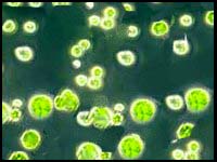 对于藻类我们并不陌生,诸如海带、紫菜、葛仙米等人类将它们作为食物已经有悠久的历史了。在生活中,我们经常看到它们的踪迹,如花盆、砖石、墙脚、树皮、池塘中的水等被染上绿色时,你看到的就是藻类。按照现在的分类,一些藻类属于原核生物,如蓝藻和原绿藻,更多的则属于真核生物,如绿藻、红藻、褐藻……藻类分布极极广,空气中、土壤里、水体中,它们无处不在。一些原核藻类还是我们地球上最古老的生命形式。藻类有大有小,大的可长到逾百米,小的则需要借助显微镜才能发现。对于用肉眼能观察到的藻类,我们称它们为大藻,肉眼看不到的就称之为微藻。 一些藻类除供我们食用外,还有一些能为我们提供生产资料和其它生活原料,如提炼燃油、化工原料等。另外也有一些藻类会给我们带来灾难,如赤潮。因此研究藻类是直接地关系到我们人类生存的重要课题。对于大藻,我们研究得比较多,开发深度也比较充分,而对于微藻,我们认识它们的价值基本不超过一百年。在这里我们将围绕微藻的开发来进行一些认识。 无论是从生态学还是从植物系统学的研究来看,微藻都是我们这个地球上最基本最重要生产者,没有了它们其它形式的生命的生存便会受到致命的威胁。从这里我们首先看到的是,微藻为其它生命提供了营养源,它们本身是具有营养价值的。对于我们人类而,能否从它们那里直接或间接地获得我们所需要的营养便是我们对微藻进行研究的首要任务。在人类中真正直接地利用微藻作为食物的是非洲土著,他们从富含碳酸氢钠的碱水湖中捞出生存于其间的青苔,经晒干后就可以作为高级食物使用了。科学家们经研究发现,这种青苔是一种蓝藻界的微藻,属于螺旋藻类的生物。令人吃惊的是,这个发现还不到五十年,而螺旋藻则是人们早就知道了的东西。于是科学家们开始将目光注意到这种微体生物的营养价值的分析上,其结果是让人激动的,一公斤这种微藻就蛋白质的含量而言相当于三公斤牛肉,这无疑为我们人类打开了一个巨大的蛋白质宝库!不过对于微藻含有极高的营养价值这一点人们认识得要稍早一些,我国在五十年代中期就曾非常关注过小球藻,那时,这种微藻在日本、美国的研究和开发也是刚刚起步,可惜由于一些让人遗憾的原因我们并未能取得突出的成果。 下面我们来看看几种最有经济潜力的微藻吧。 巨大螺旋藻 巨大螺旋藻是一种生长在非洲、墨西哥等热带高温地方碱性盐湖中的蓝藻。从分类学上来说,螺旋藻自成一个类,它们是蓝藻门念珠藻目颤藻科中的一个属。藻体为单一藻丝,这些藻丝一般能聚集在一起并形成薄片的青苔。藻丝弯曲,多数作有规律的螺旋状盘旋,所以才有了这个名称。这个属有30余个种,我国分布有 9个种,而巨大螺旋藻只产于非洲乍得湖和墨西哥的特斯科科湖。在乍得湖和特斯科科湖那里,由于高温和日光充足,巨大螺旋藻繁殖和生长十分迅速。