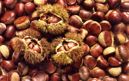 亮油油的栗子还有较高的药用价值。板栗有健脾胃、益气、补肾、强心的功用,主治反胃、吐血、便血等症,老少咸宜。栗子富含柔软的膳食纤维,血糖指数比米饭低,只要加工烹调中没有加入白糖,糖尿病人也可适量品尝它。