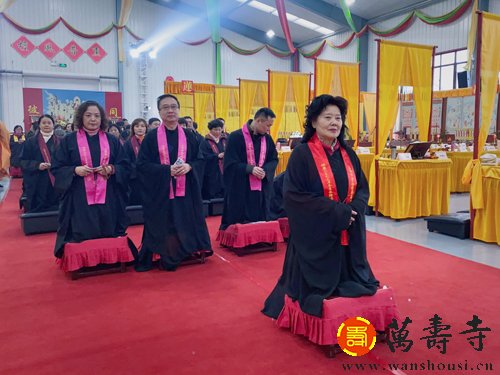 是日上午8时,举行了隆重庄严的上堂说法仪式。冬至水陆法会功德主李香娟合家、周刚合家、朱月中合家、刘勤俭合家、周志兵合家、朱丽丽合家、沈爱龙合家、盛永红合家、俞彩明合家、顾敏军合家迎请上海万寿寺方丈续建大和尚上堂说法、广度有情。众法师搭衣云集大雄宝殿,在洪亮悠扬的梵呗声中,法师礼鸣引磬前行,供斋功德主一行恭敬持香随后,前往丈室,恭请续建大和尚为众说法。